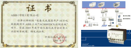 ABB工業(yè)IT AC800F 控制系統(tǒng)成功應(yīng)用于長(zhǎng)春大成集團(tuán)年產(chǎn)10萬噸賴氨酸項(xiàng)目榮獲2005年度中國(guó)儀器儀表學(xué)會(huì)頒發(fā)的優(yōu)秀工業(yè)控制系統(tǒng)獎(jiǎng)。ABB工業(yè)IT AC800F控制系統(tǒng)再次得到最終用戶和廣大業(yè)界人士的認(rèn)可與肯定。
