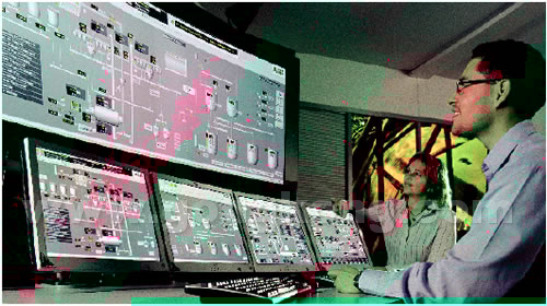 特點和優勢 人體工程學設計提高操們員的效率: System 800xA Extended Operator Workplace (800xA系統擴展操作員工作界面)的結構化高分辨率屏幕呈現了無縫、易讀的過程圖。可調的桌面高度充分發揮了人體工程學的優勢、使操作員始終警覺并保持最高效率。 卓越的展示縮減了決策時間: 在交互式高清晰度工作空間顯示器和安裝有多個臺式監控器上以接近操作員的大尺寸概覽形式向操作員展示數據。信息完全可以選擇,具有很高的可讀性。交互性實現真正的直觀感受。 更加安全可靠的操作: 操作員都喜歡對其負責的過程區域進行自由的觀覽,并保持更高的警覺性。這樣,操作員對異常情況就可以做出更迅速的反應。當監控器與大顯示器相互備份時,冗余也得以改進。很容易在監控器和顯示器上突顯報警信息列表。 廣泛的經濟優勢: 改良后的人體工程學及過程數據更好的展示減少了停車時間、提高了生產率,從而獲得更高的經濟效益。與傳統的背景投影相比,還可以在安裝和地面空間要求上節省費用。 拓展操作員工作空間。 過程信息完美地展示 基于800xA Process Portal之上,以結構化大屏幕概覽形式投映出完美的工業過程數據圖形。與其他僅對控制室來賓留下深刻印象的許多大型顯示器設計不同,該EOW擴展的操作員工作界面)賦予了操作員更重要的功能:卓越的交互、高分辨率顯示器,全面、易讀的信息,直觀的界面,有效報警及趨勢顯示管理,過程交互處理,以及人體工程學的設計將安全性、舒適性和有效性提高到了一個新的水平。 高層管理人員也可從EOW設計中獲益。除了有助于操作員更快地做出更好地決策外,它可以安裝在現有控制室而無需大規模重建,從而節省了時間和成本。與傳統背景投影方案相比,空間要求也有所減少。 典型的控制室配置是一個兩臺投影機的場所,包括2.1×0.8平米的屏幕、2560×1024像素分辨率以及4個臺式21”監控器,或為一個三臺投影機的設置,包括一個3.1×0.8平米的屏幕、3840×1024像素分辨率和6個21”監控器,均全部實現自動化。還可以是包含四個或更多投影機、更高分辨率、更多監控器的更大系統。