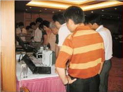 北京介紹會上客戶正在產品展示區參觀