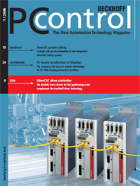 2006年第一期《PC Control》雜志秉承了刊物的一貫宗旨,并集中探討了自動(dòng)化領(lǐng)域的前沿?zé)狳c(diǎn)問題。產(chǎn)品專欄中介紹了Beckhoff新品EtherCAT伺服驅(qū)動(dòng)AX5000和CP69xx系列控制面板,并深入闡述了TwinSAFE安全自動(dòng)化模塊系統(tǒng)。應(yīng)用案例中,我們將看到PC控制技術(shù)為光電企業(yè)OTB的OLED生產(chǎn)制造所來帶的益處,TwinCAT軟件如何幫助米蘭La Scala歌劇院控制舞臺(tái)設(shè)備,以及BX3100 PROFIBUS DP總線模塊所實(shí)現(xiàn)的過程控制等。此外,本期還涵括了PC控制技術(shù)在智能樓宇、焊接冶金、食品加工等方面的應(yīng)用,并由Josef Papenfort博士就“PLC和單一PC中的運(yùn)動(dòng)控制”這一課題發(fā)表了若干心得體會(huì)。