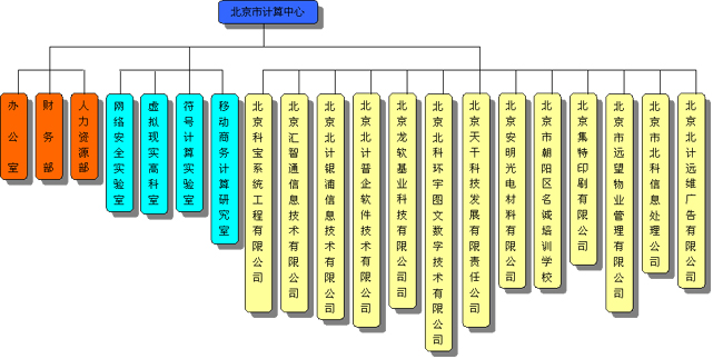 北京市計算中心下屬13個公司,3個直屬部門,1個實驗室。在13家公司中,IT型企業7家,其中軟件類6家,包括對日軟件開發、系統工程實施、軟件開發等多方面,計算機工控企業1家,所屬企業經過改制調整,絕大部分為股份制企業,屬于獨立的法人實體。