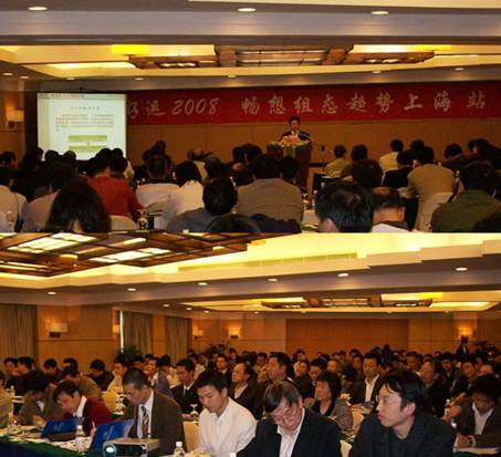 2008年3月27日,好運(yùn)2008,組態(tài)趨勢(shì)盛會(huì)的全國(guó)傳遞從上海拉開戰(zhàn)幕,隨后好運(yùn)北京、好運(yùn)杭州,好運(yùn)長(zhǎng)春、好運(yùn)青島等好運(yùn)活動(dòng)依次展開,“好運(yùn)2008,暢想組態(tài)趨勢(shì),分享精彩未來”全國(guó)城市巡展活動(dòng)是工控自動(dòng)化領(lǐng)域唯一一次以祝福奧運(yùn)為主題的大規(guī)模全國(guó)巡展活動(dòng),紫金橋好運(yùn)傳遞路線經(jīng)過全國(guó)14個(gè)城市,所到之處無不引起業(yè)界媒體及專家人士的關(guān)注,多場(chǎng)次的活動(dòng)出現(xiàn)爆滿及頻頻加座現(xiàn)象,在帶來先進(jìn)技術(shù)的同時(shí),紫金橋還為用戶帶來了奧運(yùn)特許紀(jì)念幣,奧運(yùn)福娃等與奧運(yùn)相關(guān)的紀(jì)念品。伴隨奧運(yùn)圣火的全球傳遞,好運(yùn)2008傳遞出我們工控自動(dòng)化對(duì)北京2008奧運(yùn)會(huì)的祝福,紫金橋也借此傳遞出我們對(duì)民族工業(yè)、民族自動(dòng)化及民族軟件的祝福。(下圖為好運(yùn)2008系列活動(dòng)部分活動(dòng)現(xiàn)場(chǎng))