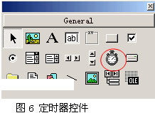 此控件的最大作用在于固定的時間內會執行所設置的程序代碼一次,如圖6所示。VB還提供了大量的控件,在此不一一敘述。