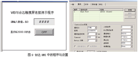 (5)HMI中的程序與設置如圖9所示(要注意【人機站號】與【控制器】的設置):