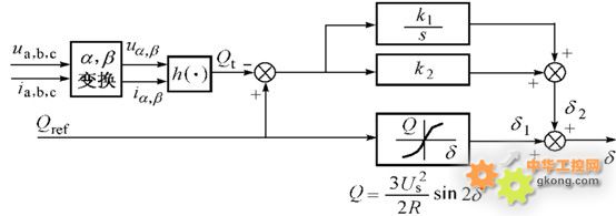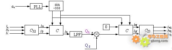 對SVG而言,常見的是恒無功功率控制方法。對采用直接電流控制的恒無功功率控制方法框圖如圖10所示。