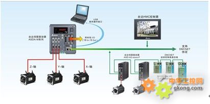 ▲ 與臺達HMC搭配,即可以DMCNET通訊架構出整合性控制系統