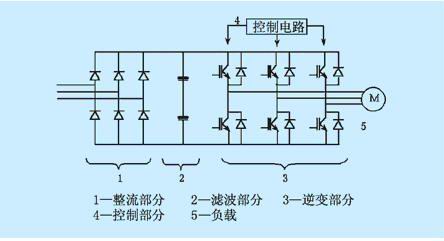 變頻器主電路原理如下圖表示,一般分為整流部分、濾波部分和逆變部分及控制部分。