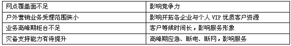 現有設備集成度低、可移動性差,業務支撐能力不足——通常情況下現場只能完成簡單的客戶意向簽訂,實際業務辦理最終還需客戶到營業網點進行。在便民性上難免有些先天不足。同時,分段辦理業務還存在現場營銷與最終的電子渠道簽約結果脫節的隱憂。