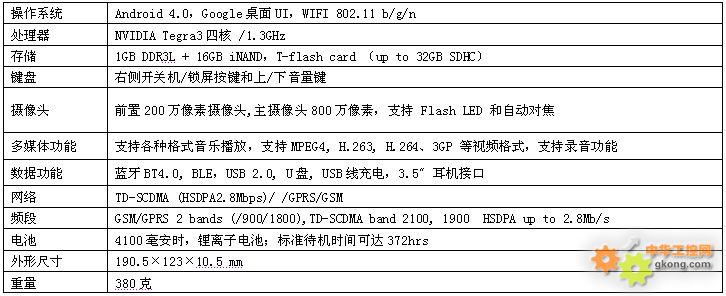 產(chǎn)品特點 * 四核CPU,12核GPU,卓越計算能力核強勁圖形渲染 * 支持TD-SCDMA雙載波和HSDPA,下載速度可達(dá)2.8Mbps * 前置200萬,后置800萬像素自動對焦攝像頭 * Android 4.0系統(tǒng) * 7英寸1280×800高清IPS全視角 * 1080P高清視頻攝錄及播放,支持Flash多媒體瀏覽 * 4100毫安時超大電池容量,超長待機和續(xù)航能力 * GPS+AGPS雙重定位導(dǎo)航 * 重力感應(yīng),六軸陀螺儀,距離感應(yīng)器,光學(xué)感應(yīng)器