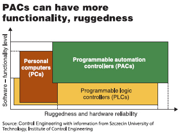 當(dāng)ARC咨詢公司的專家Craig Resnick在2001年提出可編程自控設(shè)備這一嶄新概念的時候,幾乎沒有人能預(yù)料到,這項技術(shù)會發(fā)展得如此迅速。如今,在自動化市場上,除了這個專用名稱之外,它還有一個名字——可編程自動化控制器(PAC)。也有一些供應(yīng)商不使用這一名稱,會稱其為含有PAC性能的新型可編程邏輯控制器(PLC)。 控制工程師一直都致力于尋求更實際更有效的新技術(shù),來解決各種工業(yè)控制上的問題。工控系統(tǒng)的控制任務(wù)包括生產(chǎn)過程,邏輯控制,PID控制,行為控制,視圖系統(tǒng),維護(hù),可視化過程,人機界面(HMI)的設(shè)計,以及多層次集成結(jié)構(gòu),也包括企業(yè)資源管理規(guī)劃(ERP)系統(tǒng)。 用于這些任務(wù)的設(shè)備目前有:用于進(jìn)行邏輯控制的PLC;基于模擬/微處理控制器的PID控制;用于連續(xù)過程控制的(像溫度、流量等);用于行為控制的如簡單的伺服系統(tǒng)、數(shù)控設(shè)計、線性/環(huán)形插值法數(shù)控系統(tǒng);以及用于監(jiān)控任務(wù)和操作界面的嵌入式文本顯示面板和監(jiān)控與數(shù)據(jù)采集軟件等。