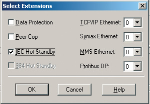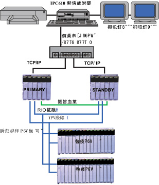 圖4 系統的歷史趨勢顯示畫面 熱備系統硬件網絡的構成 根據對PLC系統和編程和上位監控系統的選擇,確定整個控制系統的硬件網絡結構?刂葡到y由研華IPC610工業計算機一臺,EPSON LQ1600KIII打印機一臺,PHILIPS201P顯示器兩臺,WINFAST多屏卡一塊等構成,其網絡結構如圖5所示。其中,PLC系統為雙機雙纜冗余熱備系統,其主機IP為100.100.100.35和100.100.100.36,Quantum 本地(Local)站一個,遠程(Remote)站兩個,PLC主機與工控機之間采用TCP/IP通訊協議,工控機IP地址為100.100.100.37。 熱備系統CPU的軟件組態 使用Concept軟件來組態項目,在創建一個新的項目的時候,需要指定選項IEC Hot Standy選項。指定此選項的目的就是為了安裝相應的熱備系統支持程序到控制器中,在Concept V2.6版本中,這些支持程序是和Concept軟件綁定在一起的,在選中IEC Hot Standy 項目后就已經激活了相應的程序,如圖6,圖7所示。