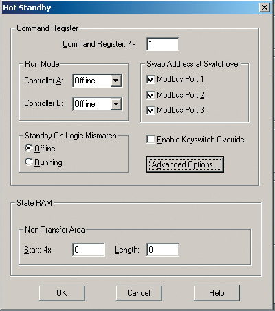 概述 首鋼遷安有限公司7000立方米高爐鼓風機自動控制系統已于2004年9月順利試車成功,現已正式投產,為高爐供風。該鼓風機是由原首鋼動力廠4#風機搬遷建成。為了提高整個控制系統的穩定性,控制系統選用了性能穩定,功能完善的SCHNEIDER公司QUANTUM系列PLC,CPU采用雙機熱備形式,PLC本地站與遠程站之間采用了雙纜連接的方式。系統還配備了以態網模塊和工業交換機,可以通過光纜與其他崗位進行通訊。由于設計的改進,使得整個系統的性能到了全面的優化,穩定性,安全性,經濟性較以前都有了全面的提高。自從投產以來,系統工作狀態非常穩定,有力的保障了生產。 QUANTUM PLC雙機熱備技術的主要特點 雙機熱備系統具有非常高的可靠性 雙機熱備系統具有非常高的可靠性,體現在以下幾個方面: ■控制系統為冗余的雙CPU設計,運行時一主一備,并通過高速光纜連接; ■控制系統為冗余的雙通訊通道,控制系統間通訊網絡采用Modbus Plus或TCP/IP協議,控制系統內部采用RIO網絡結構,以上網絡均可以采用雙纜冗余方式; ■控制系統為冗余的雙電源供電。 正常工作 時互為熱備的控制器具有的特性 在雙機熱備系統中,互為熱備的控制器具有如下的工作特性: ■實時數據傳輸,確保雙CPU程序的完全一致; ■每個掃描周期均傳送數據及狀態信息,確保雙CPU工作狀態的完全一致; ■兩個控制器之間采用光纜連接; ■切換完成的最長時間是兩個掃描周期; ■通訊速率為10M,熱備系統可放于3km之外; ■當控制程序發生改變時,可以自動完成程序下裝功能; ■初次組態時,用戶快速、有效只需下裝一次程序; ■使用IEC方式的雙機熱備配置不需要編程工作; ■使用ModSoft/Concept組態軟件均可進行配置; ■用可裝載功能塊支持984/800系列用戶; ■CHS模塊熱更換-無需停機時間。 便捷安全的熱備切換方式 可以通過以下幾種方式實現便捷安全的熱備切換: ■將主控機鑰匙開關從RUN切到OFFLINE,即可完成手動熱備切換; ■也可以通過人機界面或編程器切換; ■在電源失效,CPU失效,I/O失效(電纜或模板),NOM失效(只在啟動時)將完成CPU的自動切換。 遷鋼公司7000風機熱備系統構成 PLC的硬件設備選型及設定 一套完整的Quantum 熱備系統需要以下設備: ■兩塊相同的至少四槽的背板; ■性能完全相同的兩塊CPU控制器; ■兩塊類型一致的RIO處理器; ■兩塊類型一致的電源模塊; ■兩塊熱備模板CHS 110; ■連接用的光纖電纜; ■網絡連接的組件包括:分支器,RIO處理器與RIO網絡連接使用的F接頭,分支器MA-0186-100,MA-0185-100,終端電阻52-0422-000 ; ■如果需要其他的通訊協議,則需要增加其他的通訊適配器。 根據以上的構成熱備系統的設備要求和實際需要,首鋼遷鋼公司7000立方米風機控制系統包括PLC控制柜2套,分別用來安裝本地站和遠程站,雙機熱備的CPU安裝在本地站,本地站和遠程站之間采用雙纜連接。主要的設備選型如表1所示: