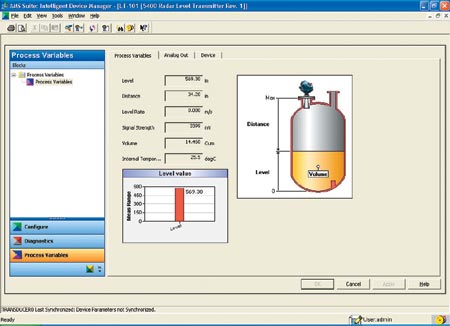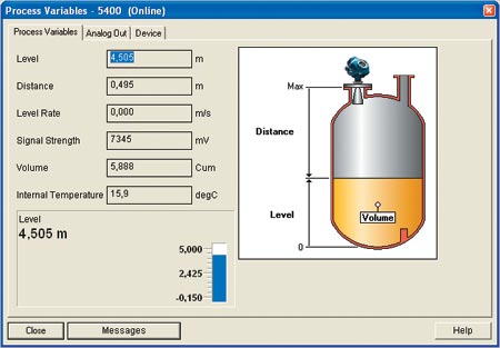 圖2:2 號(hào)主機(jī)上的雷達(dá)液位計(jì) 1992年HART通訊基金會(huì)(HCF)發(fā)現(xiàn)許多用戶希望通過數(shù)字接口獲得數(shù)據(jù),所以他們就將EDDL標(biāo)準(zhǔn)化,使主機(jī)控制系統(tǒng)接收到的是程序格式的信息描述。1994年,現(xiàn)場(chǎng)總線基金會(huì)(FF)采用了EDDL標(biāo)準(zhǔn),接著Profibus也采用了EDDL,但是這3個(gè)組織各自獨(dú)立支持該技術(shù),而且支持的方式也有一些不同。2003年這3個(gè)組織,HCF、FF以及Profibus Nutzerorganisation e.V.(PNO)開始合作并向IEC遞交了統(tǒng)一的EDDL版本,并使它成為2004:IEC1804-2的國(guó)際標(biāo)準(zhǔn)。這為在支持不同廠商不同通訊協(xié)議的現(xiàn)場(chǎng)設(shè)備的主機(jī)中創(chuàng)建單一工程環(huán)境打下了基礎(chǔ);ゲ僮餍愿鼜(qiáng)了。 通過三方—FF, HCF and PNO—的合作,EDDL得到了迅速地增強(qiáng),用戶界面和設(shè)備診斷的互操作概念也得到了延伸。EDDL的增強(qiáng)功能已遠(yuǎn)遠(yuǎn)超越了設(shè)備的組態(tài)功能。如今,增強(qiáng)的EDDL可實(shí)現(xiàn)設(shè)備診斷、資產(chǎn)管理、用戶界面顯示、柱狀統(tǒng)計(jì)圖、趨勢(shì)圖、設(shè)備簽名和歷史記錄功能。 2005年OPC基金會(huì)宣布在其統(tǒng)一架構(gòu)(UA)中采用EDDL作為描述技術(shù)。這樣OPC基于UA的軟件就可以與現(xiàn)場(chǎng)總線設(shè)備通訊—再加上在以太網(wǎng)及其它網(wǎng)絡(luò)上運(yùn)行的設(shè)備,或是在除Windows以外的操作系統(tǒng)中運(yùn)行的設(shè)備—使用EDDL的描述就可以獲得設(shè)備的數(shù)據(jù)。互作性的范圍更廣了。 這些增強(qiáng)的功能不會(huì)對(duì)描述文件產(chǎn)生任何影響,所以來自于現(xiàn)場(chǎng)1500萬臺(tái)支持EDDL的設(shè)備(再加上新的現(xiàn)場(chǎng)儀表)的數(shù)據(jù)可以很方便地獲取。EDDL可向后兼容到1990年的數(shù)據(jù)。既然現(xiàn)在市場(chǎng)上的控制系統(tǒng)都可以與資產(chǎn)管理軟件通訊,這也就意味著所有的EDDL數(shù)據(jù)可用于任何用途,從儀表組態(tài)到ERP。 例如,在2005年的ISA展覽會(huì)上,現(xiàn)場(chǎng)總線基金會(huì)展出了一套集多家廠商于一體的演示系統(tǒng),它充分體現(xiàn)了EDDL的功能。艾默生過程管理、恩德斯豪斯、西門子和Smar公司展示了壓力變送器、溫度變送器和機(jī)械設(shè)備狀態(tài)變送器,并將所有設(shè)備信息傳遞到設(shè)備管理系統(tǒng),對(duì)這些設(shè)備進(jìn)行診斷、標(biāo)定和組態(tài)。 減少多余的軟件 有一個(gè)問題總是困擾著最終用戶,要維持現(xiàn)代過程控制系統(tǒng)的運(yùn)行,就要面對(duì)層出不窮的軟件。EDDL可免除大部分軟件的使用。例如,基于HART通訊的羅斯蒙特5400雷達(dá)液位計(jì)以前需要用額外的軟件來查看儲(chǔ)罐特性,然后才可以進(jìn)行先進(jìn)組態(tài),F(xiàn)在5400將所有必要的數(shù)據(jù)都包含在EDDL中,因而就不再需要額外的特定軟件了。 另外一個(gè)例子是基于基金會(huì)現(xiàn)場(chǎng)總線的艾默生CSI9210機(jī)械設(shè)備狀態(tài)變送器,它可對(duì)電機(jī)泵軸承故障、泵的氣蝕現(xiàn)象和軸心未對(duì)中等復(fù)雜設(shè)備狀態(tài)進(jìn)行診斷,而無需特殊軟件。所有的設(shè)備信息都在電子設(shè)備描述文件中(EDD),只要使用現(xiàn)場(chǎng)總線基金會(huì)的翻譯器就可在任何系統(tǒng)中顯示這些信息。 如果系統(tǒng)必須依靠專用軟件,那么就很容易由于操作系統(tǒng)的升級(jí)、更新、控制系統(tǒng)的版本或是新的設(shè)備軟件的版本而發(fā)生故障。當(dāng)這些專用軟件的供應(yīng)商與系統(tǒng)供應(yīng)商不是同一家時(shí),問題就會(huì)變得更為復(fù)雜了。采用EDDL,許多這樣的問題就可以避免,因?yàn)镋DDL是基于文本的,它獨(dú)立于任何操作系統(tǒng)和控制平臺(tái)。主機(jī)系統(tǒng)可能改變,但是現(xiàn)場(chǎng)設(shè)備是不變的。只有設(shè)備變了,EDD才會(huì)變。 所以,要使控制系統(tǒng)盡可能避免軟件版本和操作系統(tǒng)升級(jí)的辦法是在獲取組態(tài)、診斷、用戶接口和資產(chǎn)管理數(shù)據(jù)時(shí)采用EDDL,而只在必要時(shí)使用專用軟件。 推動(dòng)用戶接口 在有些案例中,用戶界面軟件包括歷史數(shù)據(jù)、SCADA軟件,或是實(shí)時(shí)數(shù)據(jù)庫(kù)。如果用戶要對(duì)界面進(jìn)行創(chuàng)建并設(shè)置,他們必須指出變量是什么,它們?cè)贗/O中的位置,它們代表什么以及它們?cè)谄聊簧蠎?yīng)該如何顯示。在設(shè)置監(jiān)測(cè)和診斷特定設(shè)備的屏幕顯示時(shí),這種問題尤為突出。 采用EDDL設(shè)備供應(yīng)商只要寫出EDDL規(guī)范來定義變量,這些變量應(yīng)該以什么樣的順序排列,在何種情況下需要顯示等。事實(shí)上,用戶甚至不用對(duì)顯示進(jìn)行設(shè)置,EDDL會(huì)生成設(shè)備的顯示。 圖1顯示了雷達(dá)液位計(jì)的用戶界面屏幕。數(shù)據(jù)直接從EDDL獲得,無需修改和組織。它體現(xiàn)了變送器廠家對(duì)于數(shù)據(jù)顯示方式的想法。圖2表現(xiàn)的是相同的數(shù)據(jù),相同的EDD文件,但是在不同的主機(jī)上。在不同顯示風(fēng)格的“所見即所得”界面下,提供了相同的信息。 換句話說,主機(jī)控制系統(tǒng)決定如何顯示,而設(shè)備決
