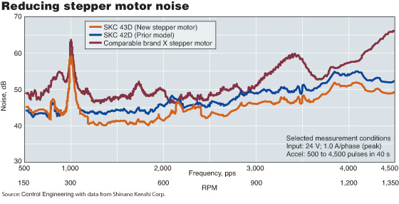 Baldor電氣的實時運(yùn)動控制器NextMove e100,可以為16個軸進(jìn)行插值,并且最多可以管理連接到以太網(wǎng)Powerlink上的240個軸。這些軸處理簡單的點對點運(yùn)動、引導(dǎo)序列、點動控制,以及與步進(jìn)(伺服)運(yùn)動系統(tǒng)相關(guān)的扭矩需求。 體積和功能問題 Parker Hannifin公司認(rèn)為體積小和操作簡單是步進(jìn)系統(tǒng)顯著的優(yōu)點,價格便宜是步進(jìn)系統(tǒng)與伺服運(yùn)動競爭的又一優(yōu)勢。“步進(jìn)系統(tǒng)在不增加任何費(fèi)用的情況下可以做的非常小,”產(chǎn)品經(jīng)理Marc Feyh說,“是有一些迷你伺服系統(tǒng),但它們并不那么小,價格還更貴,且更多部件又需要加以微型化。”開環(huán)運(yùn)行簡單是它的第二個優(yōu)點。然而,在價格/性能的基礎(chǔ)上競爭變得越來越困難了。 以“合理的價格”繼續(xù)改進(jìn)尺寸并保持性能。Parker指出這種趨勢和昂貴的高端步進(jìn)系統(tǒng)是有所區(qū)別的,它不能和低價伺服系統(tǒng)相競爭。為了滿足尺寸和成本要求,Parke的機(jī)電自動化部門正在引入步進(jìn)驅(qū)動/控制器,它是一個微型步進(jìn)單元,提供了可編程序控制器及集成輸入/輸出端口。 手掌大小的預(yù)裝件(1.1 × 1.5 × 4英寸)安裝在Parker的Promech系列線性驅(qū)動器上,構(gòu)成了微型步進(jìn)運(yùn)動系統(tǒng)。Park旋轉(zhuǎn)步進(jìn)幅度降至NEMA,11,14和17,分別在方形電機(jī)的橫截面轉(zhuǎn)化為每個面的尺寸為1.1,1.4,1.70英寸。 根據(jù)Shinano Kenshi Corp. (SKC),的研究電機(jī)小型化,高密度轉(zhuǎn)矩和低噪音/振動是保證步進(jìn)運(yùn)動控制相關(guān)的改進(jìn)辦法。SKC提出在進(jìn)行這些方面的改進(jìn)時,應(yīng)控制(降低)步進(jìn)電機(jī)的價格。據(jù)稱,新的或重新設(shè)計的轉(zhuǎn)子和定子疊片已經(jīng)優(yōu)化了內(nèi)部空間和NEMA17和13步進(jìn)系統(tǒng)的結(jié)構(gòu)。 重新設(shè)計的步進(jìn)系統(tǒng)的運(yùn)行扭矩比前面的SKC模型高出20%-30%,使用同樣的輸入功率和價格合算的永磁材料,Rex Bergsma,SKC(U.S.)的董事長解釋說,改進(jìn)是為轉(zhuǎn)子添加額外的永磁材料。由于總空間是固定的,需要移動某個定子的位置,即相繞阻的地方。疊片的重新設(shè)計也改進(jìn)了SKC新型的STP-430步進(jìn)電機(jī)的轉(zhuǎn)子和定子的齒形。結(jié)果形成一個更強(qiáng)大,更集中的磁場,減少了噪聲(見圖)和”建立時間(阻尼),比前一種模型的速度快了近兩倍,” Bergsma.說。 不僅是旋轉(zhuǎn) 除了傳統(tǒng)的旋轉(zhuǎn)步進(jìn)電機(jī),還存在線性步進(jìn)電機(jī)系統(tǒng)。Baldor Electric公司表示應(yīng)用和設(shè)計工程師對這些線性運(yùn)動產(chǎn)品越來越感興趣。它引用旋轉(zhuǎn)電機(jī)(伺服)的優(yōu)點,如減少零部件,幾乎沒有磨損或維修,并且易于結(jié)合機(jī)器使用。“線性步進(jìn)電機(jī)是非常適合應(yīng)用在輕負(fù)載的情況下,提供優(yōu)良的開環(huán)性能等, 較高的加速度和比旋轉(zhuǎn)更高的速度,”Baldor的產(chǎn)品經(jīng)理John Mazurkiewicz說。 Baldor生產(chǎn)各種各樣的直線步進(jìn)電機(jī),包括單軸,雙軸( X,Y軸)裝置,多軸龍門式,和客戶設(shè)計。 該公司的NextMove系列可編程控制器提供適當(dāng)輸出功率來運(yùn)行線性和旋轉(zhuǎn)式步進(jìn)電機(jī)(以及伺服電機(jī))。實時運(yùn)動控制器是最新的NextMove產(chǎn)品(見照片)。 Oriental Motor公司稱,新的步進(jìn)電機(jī)和驅(qū)動系統(tǒng)的開發(fā)是“一個提高性能參數(shù)和整合各部件的過程”。該過程由好幾個趨勢組成: ■ 高密度轉(zhuǎn)矩:通過使用更高的能源產(chǎn)品(強(qiáng)度)的釹鐵硼(Nd-Fe-B)稀土永磁材料定期重新設(shè)計,加上結(jié)構(gòu)上的改變,如較大的轉(zhuǎn)子直徑,已經(jīng)提高了電機(jī)轉(zhuǎn)矩性能。獲益的OM產(chǎn)品包括高轉(zhuǎn)矩的PV和PK-HT系列混合式步進(jìn)電機(jī)(2相)和CRK系列,五相電機(jī)。 ■ 改善步進(jìn)角精度和傳動平穩(wěn)性:一種先進(jìn)的微步進(jìn)方法是通過控制電流來獲得更高的步進(jìn)精度。例如,Oriental的RK系列,五相微動驅(qū)動器結(jié)合一種特殊的ASIC,專有軟件,和電流傳感器在很寬的速度范圍內(nèi)控制電流。電流傳感器和控制軟件還進(jìn)一步保證了“平穩(wěn)驅(qū)動功能,”在操作時抑制了振動和噪聲,獨立于驅(qū)動器的輸入頻率,Oriental Motor USA工程部經(jīng)理Nick Johantgen解釋道。固有振動較低的五相步進(jìn)電機(jī)和兩相步進(jìn)電機(jī)是相反的,這樣也利于該情況。”平穩(wěn)傳動”的產(chǎn)品如PK和CRK系統(tǒng)的五相步進(jìn)控制。 ■ 更多微型尺寸:“小型化是開環(huán)步進(jìn)電機(jī)和其相關(guān)驅(qū)動器總的發(fā)展趨勢”,Johantgen說,“便攜式醫(yī)療儀器和工業(yè)儀器在很多應(yīng)用場合中需要使用較小的電機(jī)。”為了滿足這一要求,OM已經(jīng)開發(fā)了8in和11in CRK五相電機(jī)和11和14in(1.4 in./35 mm)PK兩相步進(jìn)電機(jī)。新的緊湊型CRK微步進(jìn)驅(qū)動器尺寸僅為0.98 x 1.77 x 2.56 in,并且在每一相位最大可控制1.4A CRK電機(jī)。 系統(tǒng)和市場分析 Oriental Moto的另一打算是將各種步進(jìn)電機(jī)/驅(qū)動器部件組成一個系統(tǒng)解決方案。這包括安裝板,彈性聯(liá