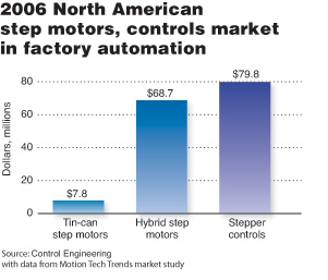 根據(jù) Motion Tech Trends的研究,2006年,北美地區(qū)步進(jìn)運(yùn)動系統(tǒng)的增長可望達(dá)到3-4%。