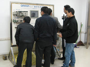 學員們在重慶大學實驗室實際操作PLC設備 |