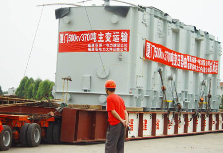 該變壓器由省電力大件運輸公司負責運輸,由海滄碼頭運至廈門500千伏變,運輸路程為56公里,運輸9天,沿途需經過海滄、杏林、同安,經過15座橋梁,需排除郵電、通訊、電力、有線電視網絡線等空中障礙100多處。其中運輸難點為下穿廈漳高速公路鳳山立交橋,因高度受限必須采用卸車、拖越、裝車續運的方法前后就需3天時間,整個運輸過程約9天時間。目前,省超高壓局已完成了所有橋梁和路面的加固和技術論證,預計6月10日開始運輸,6月18日運抵變電所內就位。