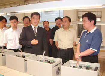 希望集團董事局主席劉永言教授、大陸希望集團總裁陳斌博士陪同楊志文副省長一行參觀了森蘭變頻器裝配生產(chǎn)線。陳總裁就公司技術(shù)研發(fā)、生產(chǎn)經(jīng)營、市場開拓等方面的情況作了匯報。他說,變頻器被喻為“工業(yè)維生素”,廣泛應(yīng)用于機械、紡織、能源、化工、冶金等領(lǐng)域。森蘭變頻器是在希望集團董事局主席劉永言教授親自主持下,取得了幾十項專利專有技術(shù)基礎(chǔ)上研制開發(fā)的高新技術(shù)產(chǎn)品。經(jīng)過幾年的發(fā)展,成為中國變頻器的第一品牌。去年在國內(nèi)首推的SB80工程型變頻器,填補了國內(nèi)空白,已成功應(yīng)用在陶瓷、電梯、精紡等行業(yè),得到了客戶的高度贊揚。