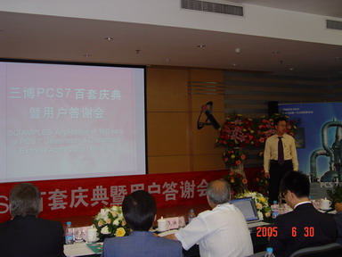 6月30日,綜合自動化信息技術工程中心PCS7百套慶典——暨用戶答謝會在自動化大廈報告廳隆重舉行。中科院院士戴汝為先生、自動化所長譚鐵牛、綜合自動化信息技術工程中心研究員、三博公司董事長陳良懷、綜合自動化信息技術工程中心副主任、三博公司總經理林紅權、西門子自動化與驅動集團自動化系統部總經理安曉杰先生以及PCS7的廣大用戶出席了本次會議。會上,西門子公司向三博公司頒發了PCS7百套慶典獎杯,并向他們表示了祝賀。綜合自動化信息技術工程中心副主任林紅權向來賓全面介紹了中心的科研工作與技術產品,贏得了廣大客戶的一致好評。