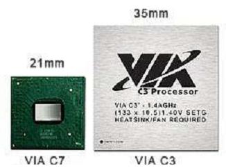 C7處理器就是研發(fā)代號為“Esther”的威盛新一代處理器,其主要的應用領域為主流的輕薄筆記本、mini PC、綠色客戶端、個人電子產(chǎn)品如家用媒體中心和PVR、高密度服務器和服務器用品。從這樣的應用領域可以看出,C7最核心的應用領域還是嵌入式產(chǎn)品市場,C7的技術特性也反應了這一點:C7處理器采用了高效的VIA V4總線接口,V4總線數(shù)據(jù)位寬64bit,頻率包括400MHz、533MHz和800MHz。C7具備128K的一級緩存和同樣容量的二級緩存,加上更高的FSB,C7的性能比起Eden和C3,有非常大幅度的提高。同時,C7由于支持包括MMX、SSE、SSE2、SSE3這些Intel的多媒體指令集,因此其多媒體性能將非常令人期待,這對于以IPTV為一大主要應用方向的威盛嵌入式產(chǎn)品,將形成非常有力的幫助。在威盛處理器最引以為豪的功耗方面,C7同樣繼承了“先輩”的“優(yōu)良傳統(tǒng)”, C7支持NanoBGA的封裝方式,在待機狀態(tài)下,C7僅消耗100mW電力,在2GHz工作狀態(tài)下,使用大約20W電能。這樣的發(fā)熱量,保證了C7根本無需非常規(guī)的散熱方式,甚至大一些的散熱片就可以滿足C7的散熱需求,這使C7在嵌入式產(chǎn)品的應用中,既保證了穩(wěn)定性、減少了電能消耗,同時也大大的減少了可能發(fā)生的噪音。最后,C7搭配目前還未正式公布的VIA CX700系列芯片組,可以組成mini-ITX甚至Naro-ITX架構的超小尺寸平臺。屆時,在強大的芯片組支持下,基于C7的嵌入式系統(tǒng)還將進一步發(fā)揮其巨大能量。