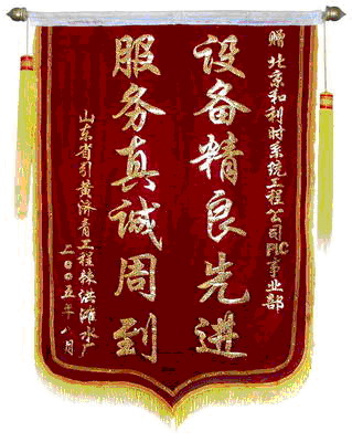 日前, 青島棘洪灘水庫配套水廠敬贈給和利時公司PLC事業部 “服務真誠周到,設備精良先進”的錦旗,以感謝和利時公司為該廠自控系統項目提供先進、實用的設計方案和性能優越、質量可靠的產品及高效、及時的工程服務。 用戶百感交集地說:“我們選擇和利時完全正確,你們不僅實現了當初招標文件要求的所有功能,還針對現場情況進行了大量優化和完善工作。你們不僅提供了先進、實用的產品,更提供了周到、滿意的服務。你們的服務熱情周到、規范高效,和利時工作人員工作嚴謹、認真負責,這些都令我們深受感動,無以言謝,以錦旗表達我們的感謝之情”!
