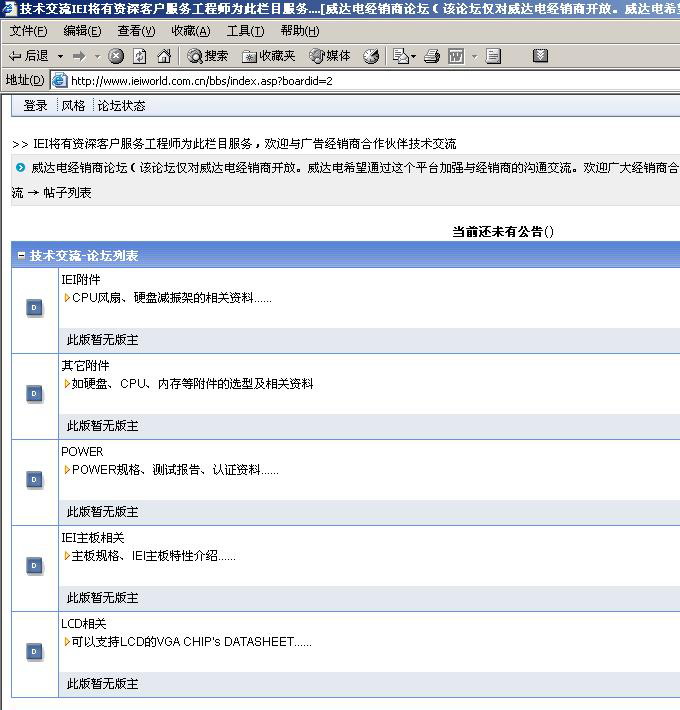 公司還針對不同產品的技術問題,在技術交流一欄中又劃分出5個小欄目:IEI附件、POWER、其它附件,IEI主板相關、LCD主板相關,以滿足不同客戶的需要。