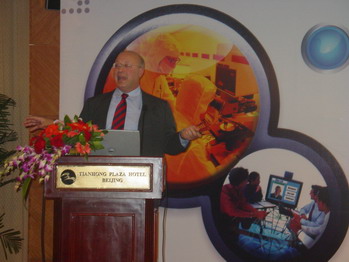 會上,研祥公司高級產品工程師周鐵文、英特爾數字企業事業部IPD/IA產品線產品市場經理潘峰、清華大學計算機系網絡研究所教授羅平以及Crossbow公司亞洲區首席代表Mr. John Crawford等專家就中國嵌入式技術應用的現狀及未來作了熱情洋溢的演講。尤其是John Crawford先生關于Anywhere Anytime Wireless Sensor Network的精彩演講吸引了在場的每一個人,時不時蹦出來的“蹩腳”中文更是令大家忍俊不禁,同時也忙壞了身邊的翻譯。