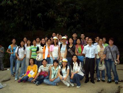 下午我們向著天子山上的天子瀑布的方向出發(fā)了,又是一路高歌,員工們你追我趕向山頂沖去,山頂壯觀的天子瀑布讓大家興奮不已,大家紛紛在瀑布前合影留念。