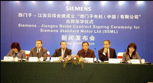 2005年12月12日,西門子(中國)有限公司自動化與驅動集團(A&D)與中國合作伙伴江蘇貝得電機股份有限公司簽訂協議,雙方合作在江蘇揚州建立西門子電機(中國)有限公司(SSML)。新公司將擁有大約1500名員工,致力于提供全系列中小型低壓電機產品開發和制造服務。憑借 SSML 的產品供應與西門子(中國)有限公司強大市場覆蓋的協同優勢,西門子計劃在中國中檔價位的細分市場取得領先地位。 新的合資公司將按程序申請獲得相關部門的批準。