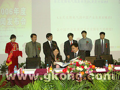 2006年4月8日,菲尼克斯電氣中國(guó)公司在總部南京召開了2006年度新聞發(fā)布會(huì)。來(lái)自電氣自動(dòng)化界的專家學(xué)者等一百多位貴賓出席發(fā)布會(huì),他們是機(jī)械工業(yè)聯(lián)合會(huì)副會(huì)長(zhǎng)朱森第先生、中國(guó)自動(dòng)化學(xué)會(huì)理事長(zhǎng)戴汝為院士、浙江大學(xué)孫優(yōu)賢院士、中國(guó)自動(dòng)化學(xué)會(huì)副理事長(zhǎng)孫柏林研究員、航天五O二所吳宏鑫院士、中國(guó)儀器儀表行業(yè)協(xié)會(huì)副秘書長(zhǎng)董景辰先生、中國(guó)航天科技集團(tuán)公司第五研究院第五O二研究所副總設(shè)計(jì)師胡軍、清華大學(xué)自動(dòng)化系金以慧教授、國(guó)家信息化測(cè)評(píng)中心高級(jí)顧問龔炳錚、中國(guó)石化工程建設(shè)公司副總工黃步余、北京和利時(shí)系統(tǒng)工程股份有限公司總裁王常力、浙大中控總工程師熊菊秀女士、北京亞控科技發(fā)展有限公司總經(jīng)理林偉總經(jīng)理、上海大眾汽車有限公司賀本湖博士、華中科技大學(xué)羅毅院長(zhǎng)、上海電力學(xué)院張浩院長(zhǎng)、天津輕工職業(yè)技術(shù)學(xué)院郭志強(qiáng)院長(zhǎng)等。中央電視臺(tái)、中國(guó)經(jīng)營(yíng)報(bào)、中國(guó)青年報(bào)、21世紀(jì)經(jīng)濟(jì)報(bào)道,工控網(wǎng)、弗戈媒體、自動(dòng)化博覽、控制工程、電力設(shè)備、冶金自動(dòng)化、通信電源技術(shù)、電源技術(shù)應(yīng)用等全國(guó)六十多家媒體記者與會(huì)并報(bào)道這一盛況。發(fā)布會(huì)主題內(nèi)容有:菲尼克斯電氣中國(guó)TNC CoC戰(zhàn)略2005年具體實(shí)施和發(fā)展;菲尼克斯電氣積極支持民族產(chǎn)業(yè)發(fā)展及其戰(zhàn)略合作項(xiàng)目簽字儀式;菲尼克斯電氣新產(chǎn)品新技術(shù)新概念發(fā)布。菲尼克斯電氣中國(guó)公司總裁李慕松教授、總經(jīng)理顧建黨、研發(fā)總監(jiān)杜品圣博士分別向與會(huì)代表做了介紹。