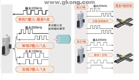·內(nèi)置6點(diǎn)同時(shí)100kHz的高速計(jì)數(shù)功能,雙相計(jì)數(shù)時(shí)可以進(jìn)行4