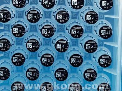 該流程的第一步是把48個樣本槽手工裝入容器中,并在容器上打上條形碼。然后用激光給每一個樣本槽分別打標,這包括了容器的條形碼和每一根樣本槽專有的認證碼,并且用肉眼可以閱讀。此外,還要標識含有相同信息的、DataMatrix機器可以閱讀的編碼。在這一步,每一個編碼都要進行檢查和認證,確保以后能夠被解碼。