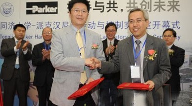 中國,上海(2010年5月11日) 派克漢尼汾與同濟大學機械工程學院在同濟大學簽署同濟大學-派克漢尼汾合作合約,并為新落成的同濟大學-派克漢尼汾傳動與控制實驗室揭幕。