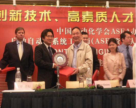 隨后,富澤總經理代表三菱電機接受了中國自動化學會頒發的“ASEA貢獻獎”。