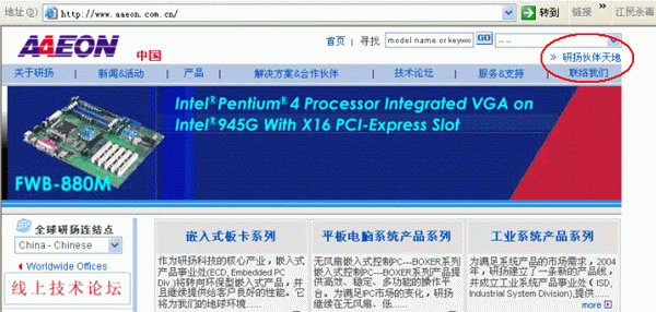 www.aaeon.com.cn 網站首頁右上方創建了一個全新的伙伴天地(