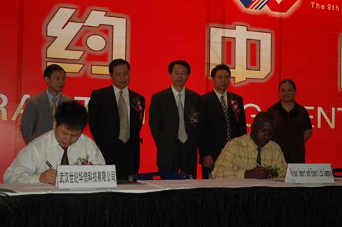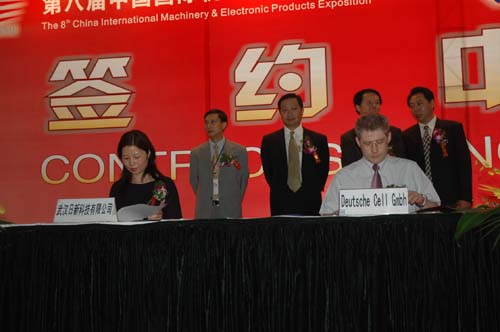2007年9月25日,“第八屆中國國際機電產品博覽會、第九屆武漢經貿洽談會”進出口貿易項目簽約儀式盛大召開。神龍汽車有限公司、PEUGEOT CITROEN AUTOMOBILES、長飛光纖光纜有限公司、Heraeus Tenevo LLC、武漢日新科技有限公司、Deutsche Cell Gmbh、武漢郵電科學研究院、OKL Electronics(H.K.)Ltd、武漢世紀華信科技有限公司等多家中外知名企業參加了此次簽約儀式。