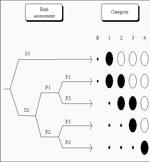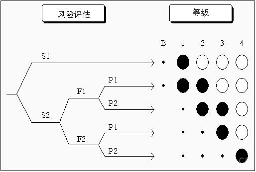 為了采取合理有效的安全保護措施,以達到CE認證的標準,首先必須對機器設備的危險性進行分析和評估。按照歐洲機器安全標準EN954-1標準,對機器設備進行“危險性評估”后可以得出其危險等級。危險等級可分為B,1,2,3,4共5級,等級B最低,等級4最高。機器設備的危險等級數是根據事故發生時人身受傷程度、事故發生幾率和事故的可預防性來劃分的,如下圖所示:
