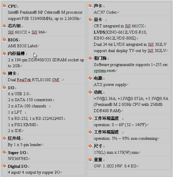 KINO-6612使用了SiS 661北橋芯片,支持Intel Pentium M處理器,支持FSB 533/400,大大提升了產品的功效。