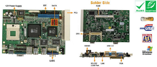CPU:支持Intel® Pentium® M / Celeron® M,FSB 400/533MHz 的處理器(留有一個3pin的風扇接口)