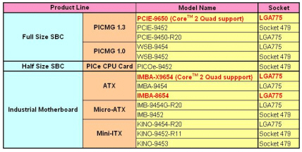 目前IEI提供LGA775和SOCKET 479兩種主要的插槽類型之主板如下圖所示:
