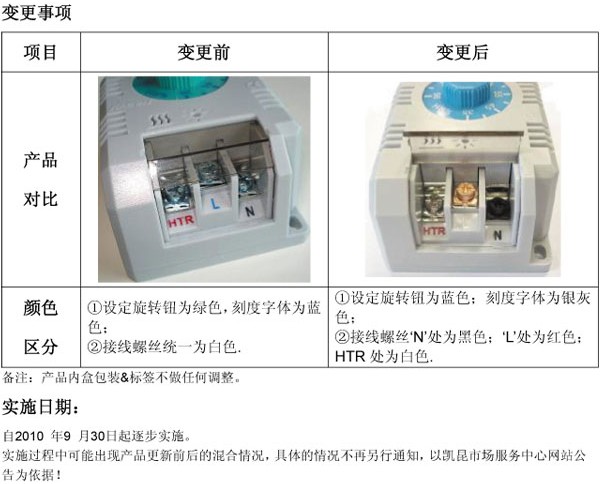 濕度控制器技術(shù)規(guī)格更新通知