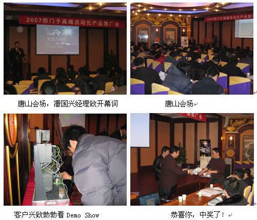 感謝自動化系統部的大力支持!感謝唐山辦事處和天津辦事處的大力支持!12月28日,1月9 日,西門子SIMATIC 高端產品推廣會北方區的旅程將在濟南和太原停留,有了前幾站的成功經驗,相信此次會議一定能夠取得圓滿成功。