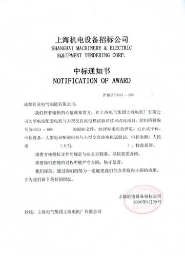 佳靈公司日前接到上海機電設備招標公司的中標通知書,成都佳靈電氣制造有限公司在上海電氣集團上海電機廠有限公司大型電站配套電機與大型交直流電機試驗站技術改造項目——大型電站配套電機與大型交直流電機試驗站12000KVA試驗電源系統項目已正式中標,與此同時,成都佳靈電氣制造有限公司同上海電氣集團上海電機廠有限公司簽訂了高達數千萬元的采購合同,這是迄今為止國內企業國產變頻器獲得的最大一筆單項合同定單。