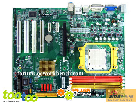 在即將發(fā)布的Cebit 2007大展上,磐正將發(fā)布幾款基于最新的MCP68家族的主板產(chǎn)品,產(chǎn)品型號(hào)為EPoX EP-AP68P/G。從照片上可以看到,這款主板采用全尺寸ATX板型,采用4層PCB板制造,提供了4根PCI、2根PCIex1和1根PCIex16插槽,用戶可以自行升級(jí)獨(dú)立顯卡。該主板支持全系列AM2處理器,提供4根DDR2-800內(nèi)存插槽,配備DVI和D-SUB雙顯示輸出接口,但并不支持HDMI接口。據(jù)悉,用戶可以通過(guò)一塊附加的子卡來(lái)實(shí)現(xiàn)對(duì)HDMI輸出的支持。
