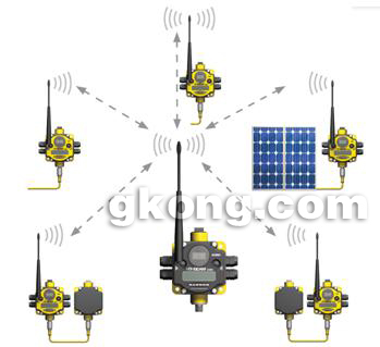 DX80無線傳感器網絡系統使用RS-485"Modbus RTU"進行數據傳輸(星狀拓撲結構),真正實現無線傳感。通過I/O的變化或者輪循(在規定時間內)的方式在設備間進行信息傳輸,監控網絡。