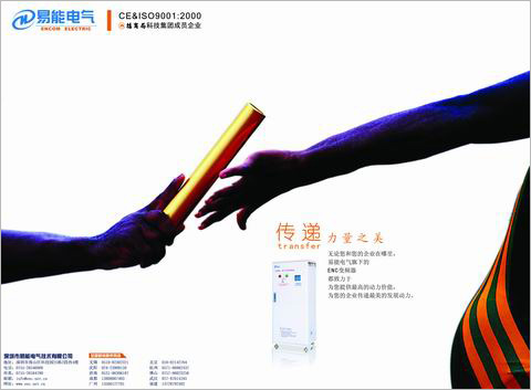 隨著企業(yè)的發(fā)展和易能品牌形象的提升,易能人認(rèn)識(shí)到必須要有易能獨(dú)特文化精神和具有視覺美感沖擊的廣告來向廣大客戶準(zhǔn)確傳遞易能的形象;經(jīng)過一段時(shí)間的精心策劃與設(shè)計(jì),代表易能電氣品牌形象的創(chuàng)意作品終于在萬(wàn)眾期待中于近日新鮮面世。