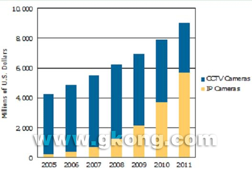 與2006年的49億美元相比,全球視頻監控攝像機銷售收入到2011年有望達到90億美元,維持復合年增長率(CAGR)為13.2%。與此同時,與2006年的2,980萬臺相比,視頻監控單元的出貨量將以17.1%的CAGR增長到2011年的6,570萬臺,有望翻兩番以上。