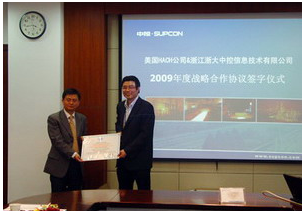 經過3個多月的醞釀、談判,中控信息公司與美國HACH(哈希)公司達成戰略合作協議。4月21日下午,雙方在中控科技園D213會議室舉行2009年度戰略合作協議簽字儀式。HACH公司中國區銷售總監程立及分銷商代表,中控信息公司總裁章如峰、副總裁張伯立及相關人員20余人參加了簽字儀式。