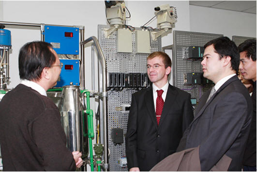 在中科院自動化所-中自三博控制工程公司董事長陳良懷與西門子自動化與驅動集團自動化系統部總經理斐德思先生的會晤中,雙方就此次自動化技術聯合實驗室落成的重要意義展開討論,并就進一步加強雙方溝通與合作達成共識。斐德思先生一行隨后參觀了自動化技術聯合實驗室。林紅權介紹并回顧了技能培訓測試中心工作的開展情況,從8月份西門子與中國科學院舉行設備捐贈協議簽字儀式以來,經過三個月的醞釀與籌備,在雙方共同積極努力下所有實驗設備已經完全到位,即日便可投入使用。斐德思總經理表示今后西門子公司將以此為契機,通過在技術培訓和文檔方面對中科院自動化研究所提供支持,進一步幫助自動化工程人才培養,從而推動自動化系統工程師認證測試中心全面系統的發展。