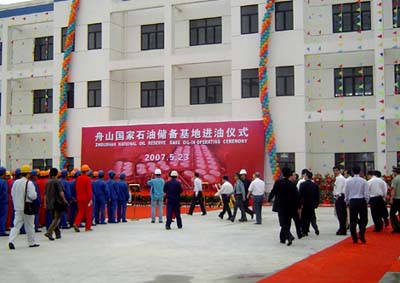 隨著國家發改委能源局副局長一聲令下,滾滾的中東原油注入了一期工程的4#、5#、6#油罐。舟山國家石油儲備岙山基地的成功通油,標志著我國能源戰略的一期工程已初建成效。
